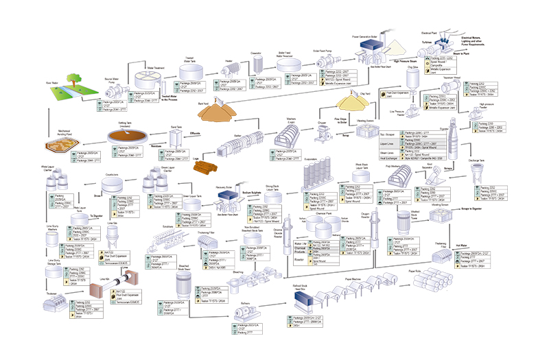 TEADIT泰迪的過程裝備密封技術可應用于造紙全流程中的各種專業設備,如:鍋爐給水泵、脫氧器、水源泵、繩結分離器、石灰漿清洗機等造紙裝備中,能有效減少停機時間并降低維護成本。